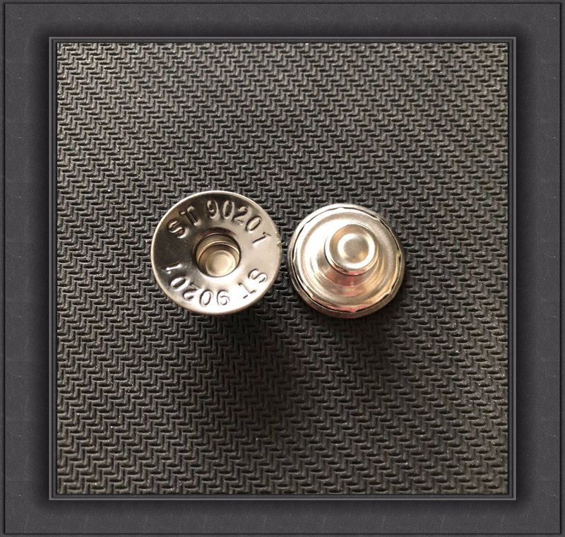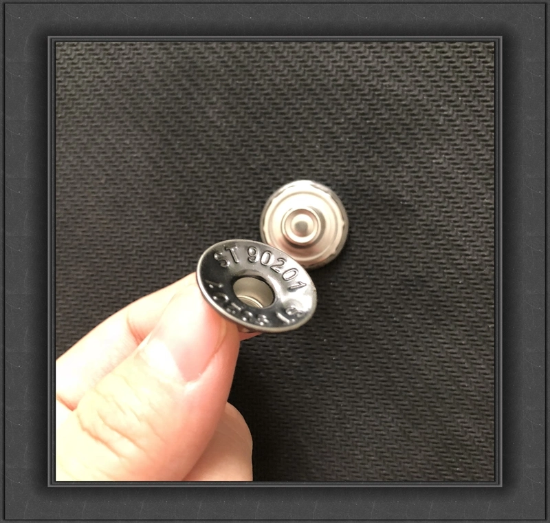 • Middle Hole Shank Button with Engraved Logo and 2 Pin KataMiddle Hole Shank Button with Engraved Logo and 2 Pin Kata