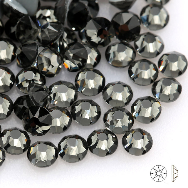 Garment Accessory White Color Black Stone Ss 6, Ss 8, Ss10 , Ss 12, Ss 16, Ss20 Hot Fix Stone Star Round Fashion Shine Color Polygon Rhinestone