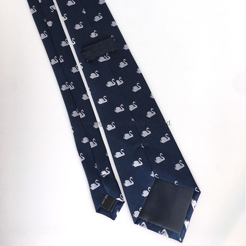 Product DescriptionExquisitive factory direct navy with swan logo jacquard 100% silk Corbata necktie for menMaterial100% silkSize148cm x 8.5cmMOQ100 pcs per designTie tippingNavy solid tippingMatching productbow tie, self bow ,pocket square, cufflinks, tie clipLabel serviceFree costShippingBy expre......