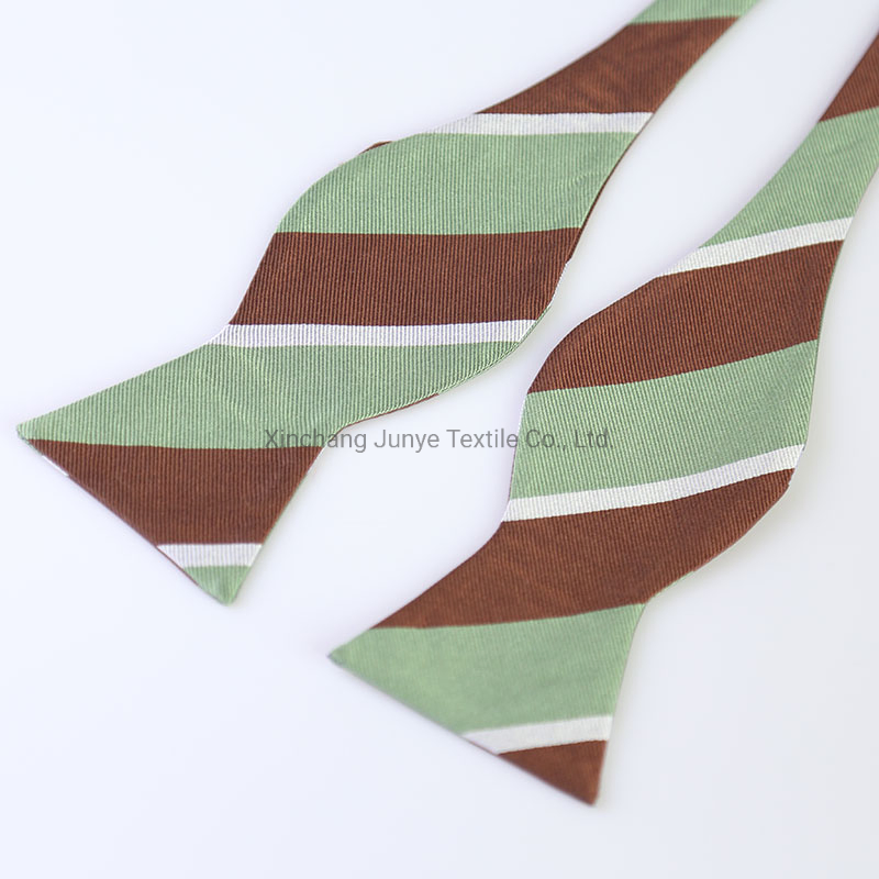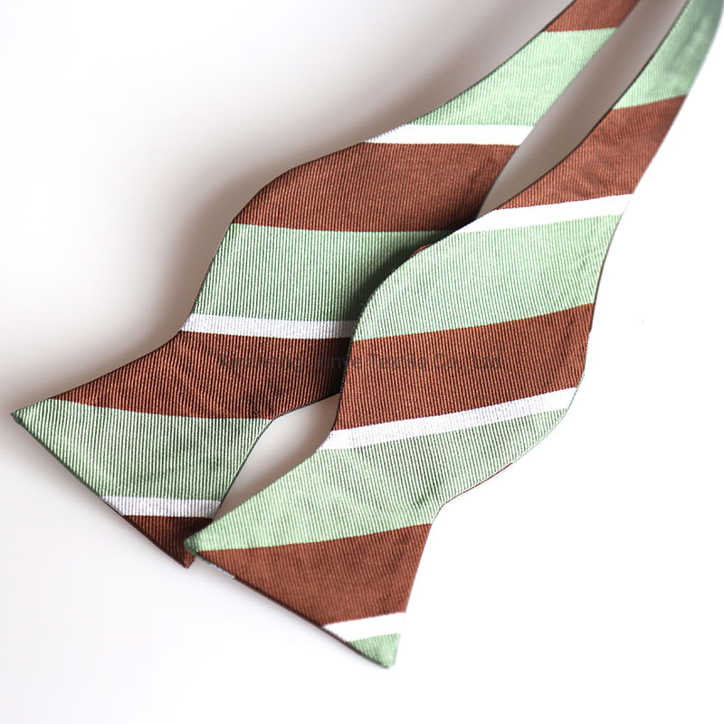 Product DescriptionHigh quality 100% silk men's jacquard striped self bow ties with your labelMaterial100% silkSize105cm x 6cmMOQ100 pcs per designTie tippingNavy solid tippingMatching productbow tie, necktie ,pocket square, cufflinksLabel serviceFree costShippingBy express ,by sea or by airPaym......