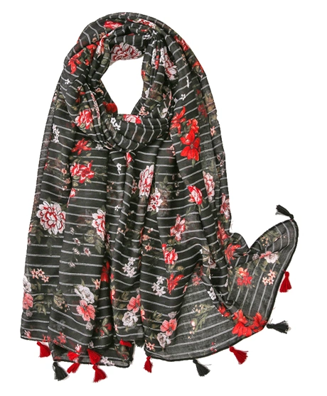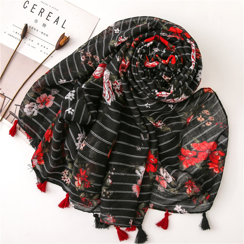 | Descripation | Customized design Ladies Fashion elegant strips flora Shawl Scarves Women Muffler Headband Wrap Hijab stole scarf for Spring |