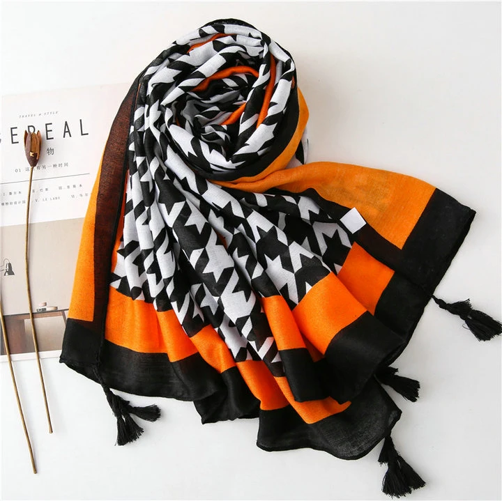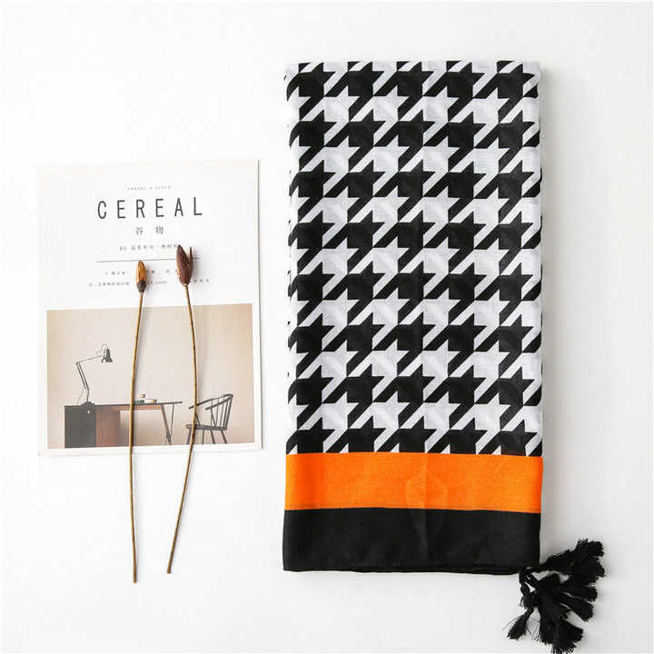 Fashion Classic Houndstooth Scarf Swallow Grid Shawl Hound Tooth Check Hijab Dog Tooth Muffler Tassels Black White Contrast Color Scarf For Spring AutumnItem numberSCV-02365Color1 clour as picture, black white/orangeMaterial100% polyesterSize90CM*180CM or according to your requestWeightabout 100......
