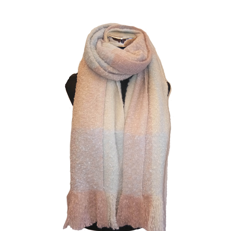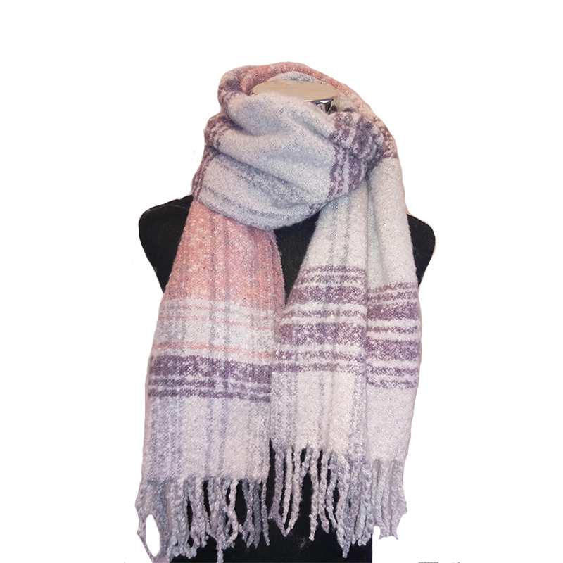 | KG18-039S | 100%Polyester | Soft Boucle Woven Check Blanket Scarf | 180*55+10 | 250 |